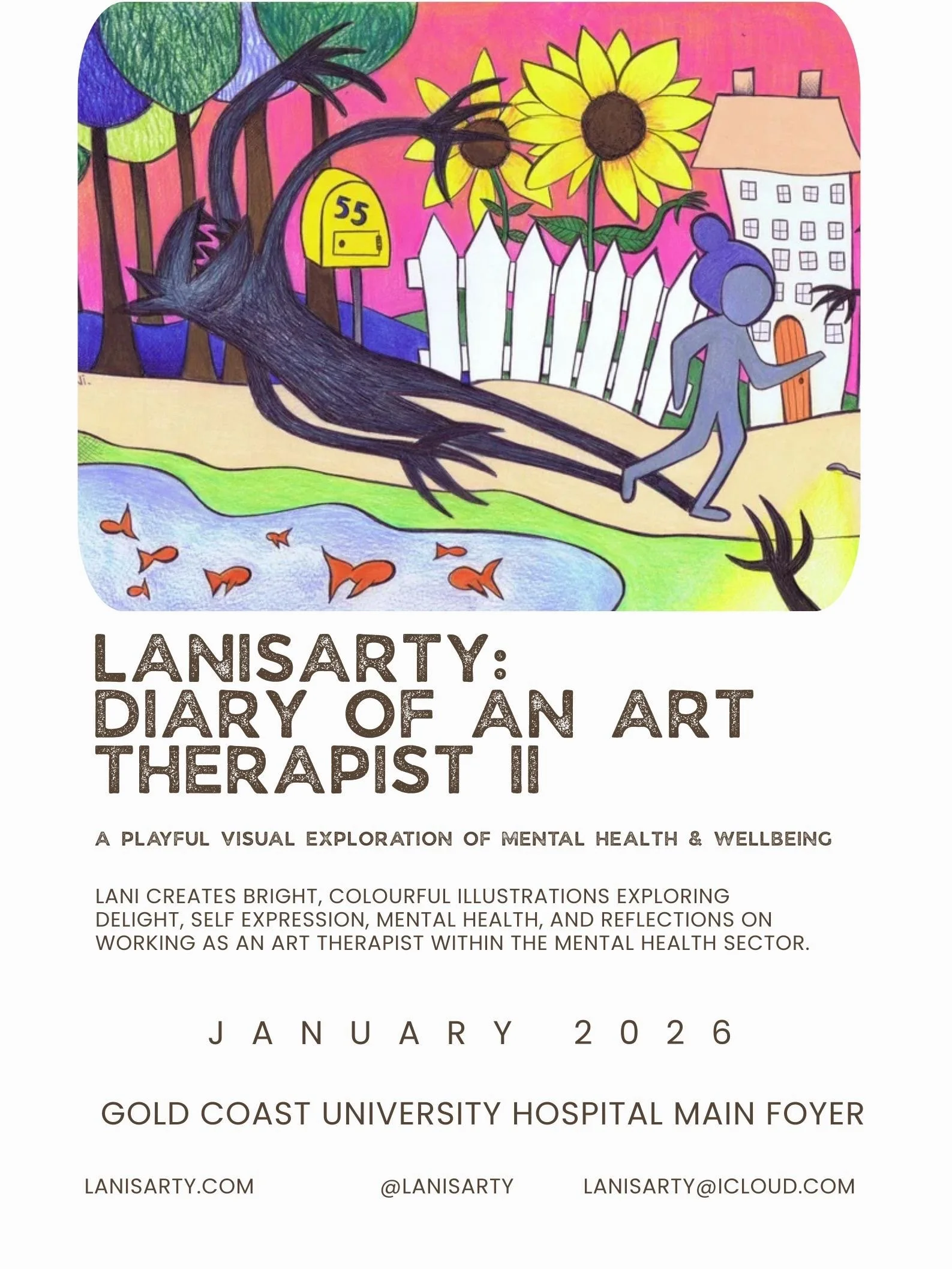 Lanisarty focusses on storytelling, promoting awareness around mental health, and uses art to communicate emotions and thoughts- both serious and whimsical.