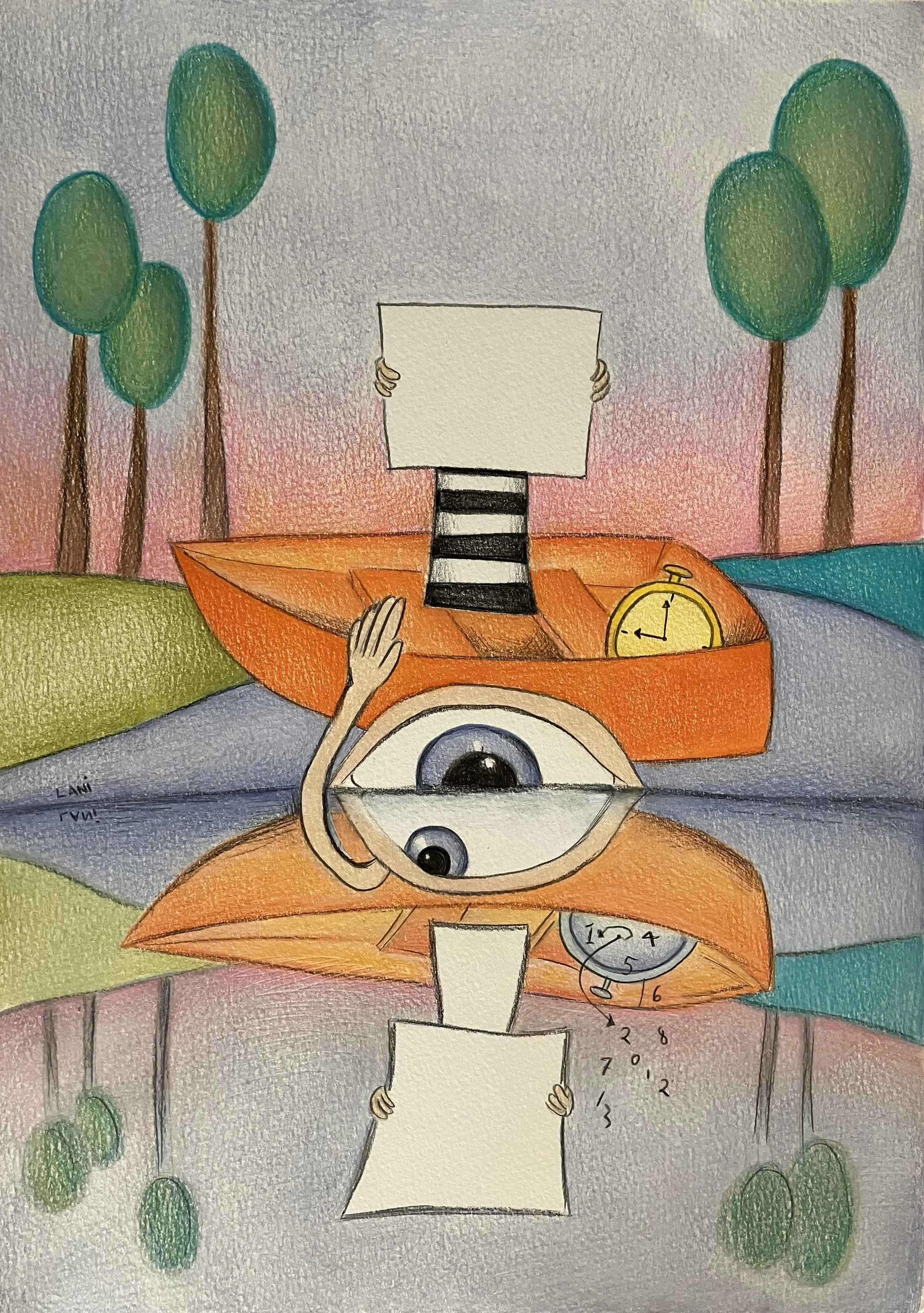 Lani is a Brisbane based artist and registered art therapist who follows curiosity wherever it wanders. Her work lives in the space between daydream and detail—where playful marks, repeating archetypal characters and quiet whimsical humour coexist. Guided more by intuition than instruction, Lani treats the creative process like a conversation: sometimes thoughtful, sometimes mischievous, always sincere and honest. Using colourful pencils and biro, Lani explores ideas around faith, identity, meaning making, mental health, morality, and observations of daily life. She invites viewers to slow down, look twice, and find their own small moments of wonder tucked between the mundane. Lani has never formally studied art beyond school, and champions the accessibly of her whimsical surrealist style of art for anyone to be able to express their own visual language and engage in the playfulness of creativity.
